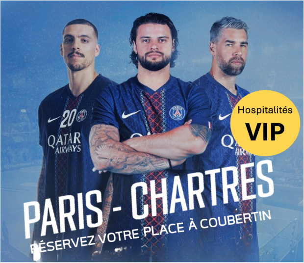 Pour valider l’achat des billets pour les matchs PSG hand vs Chartres, il est obligatoire d’ajouter au panier le même nombre d'accès VIP hand. Cette condition est indispensable pour finaliser votre commande. Pensez à bien sélectionner les deux événements avant de procéder au paiement, sinon votre commande ne sera pas validée -> Exemple : J'achète 1 billet PSG/Chartres, je dois aussi mettre au panier 1 accès VIP hand.